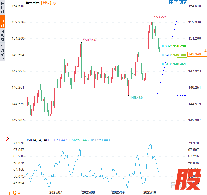 汇通财经APP讯——美元兑日元连续四个交易日下跌,并于周五(10月17日)亚市一度触及近两周低点(149.90),跌幅约0.30%。贸易关系再现紧张迹象,加之持续的地缘政治不确定性,抑制了投资者对风险资产的偏好,并推动部分避险资金流向日元。此外,对日本财政健康担忧的缓解,也是推动过去一周左右日元走强的因素。