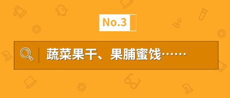 蔬菜果干、果脯蜜饯等,原材料的含糖量加上添加糖的量,总计含碳水化合物可达35%~65%,高者可达80%以上。每摄入100克这类零食,至少会摄入35克以上的糖。日常生活中,有一部分人用饮料代替白开水,或者用蔬菜果干、果脯蜜饯代替新鲜水果蔬菜,往往会吃得比较多,导致大量增加了额外添加糖的摄入。